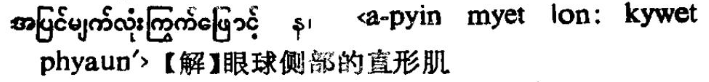 | 15 | အပြင်မျက်လုံးကြွက်ဖြောင့် 已经复制 |