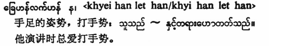 | 43 | ခြေဟန်လက်ဟန် 已经复制 |
