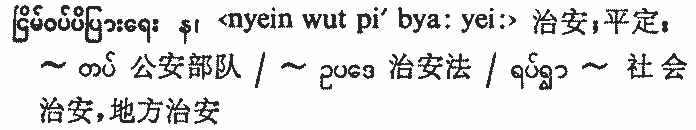 | 8 | ငြိမ်းစဲ 已经复制 |