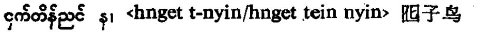 | 2 | ငှက်တိန်ညင် 已经复制 |