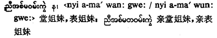 | 3 | ညီအစ်မဝမ်းကွဲ 已经复制 |