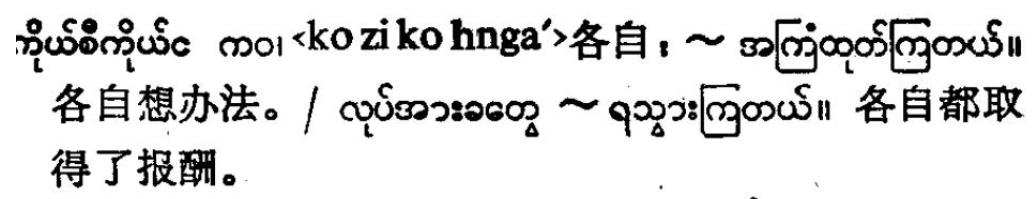 | 38 | ကိုယ်စီကိုယ်စီ 已经复制 |