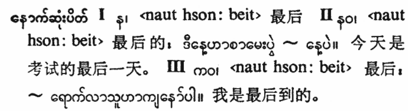 | 12 | နောက်တော်လိုက် 已经复制 |