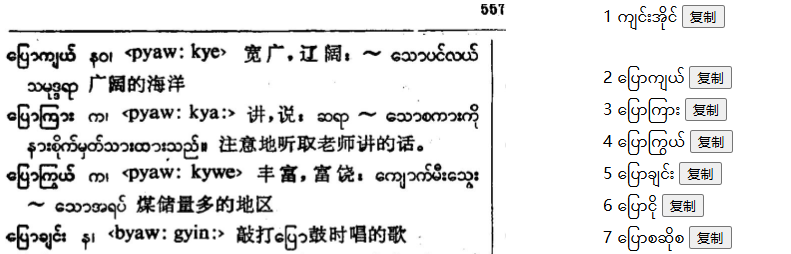 | 41 | ပြိုးပြိုးပြေက်ပြောက် 已经复制 |