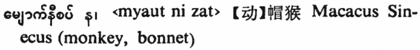 | 18 | မျောက်ခုံညင်း 已经复制 |