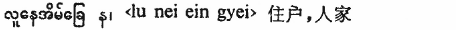 | 2 | လူနေအိမ်ခြေ 已经复制 |
