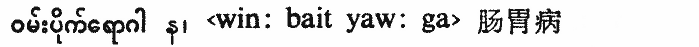 | 3 | ဝမ်းထွက်ပေါက်ဖော် 已经复制 |